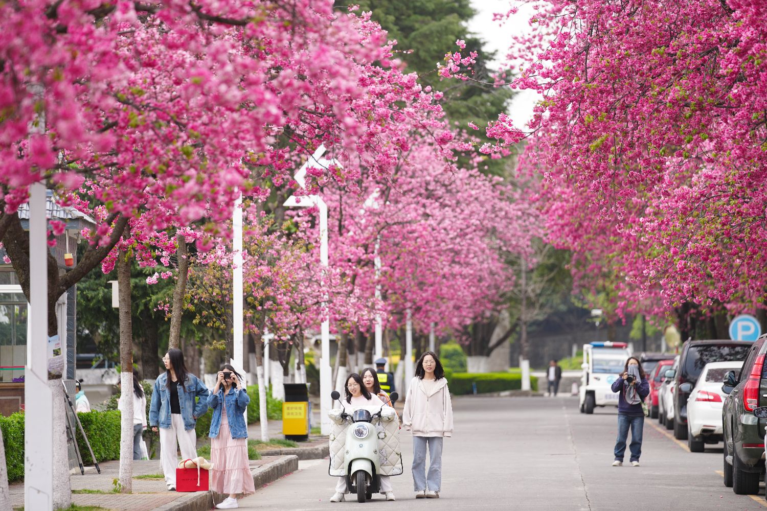 3月18日,云南省大理市的大理大学迎来一年一度的樱花季,校园里樱花盛开。中新网