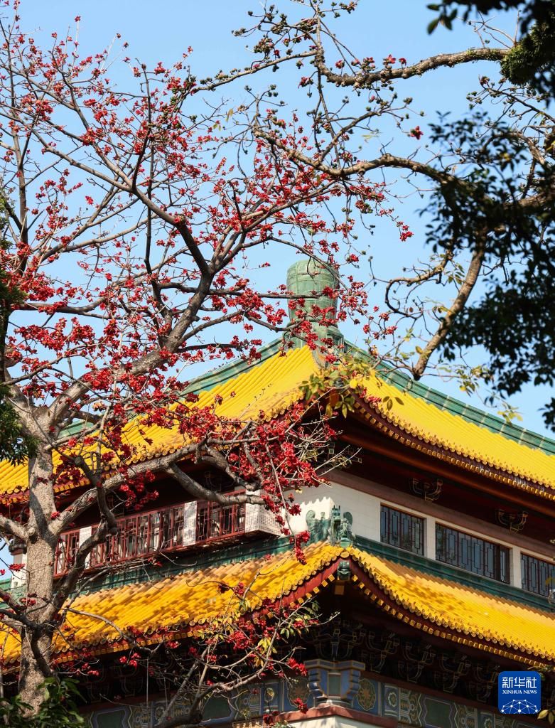 3月19日,这是在广州市政府前拍摄的木棉花。新华社