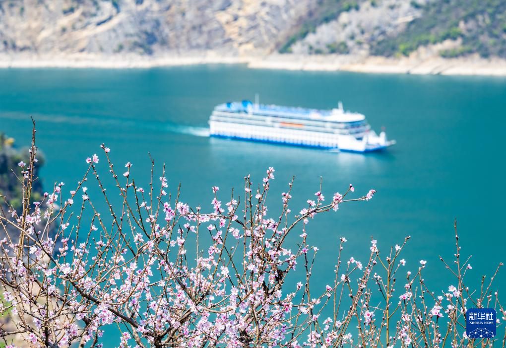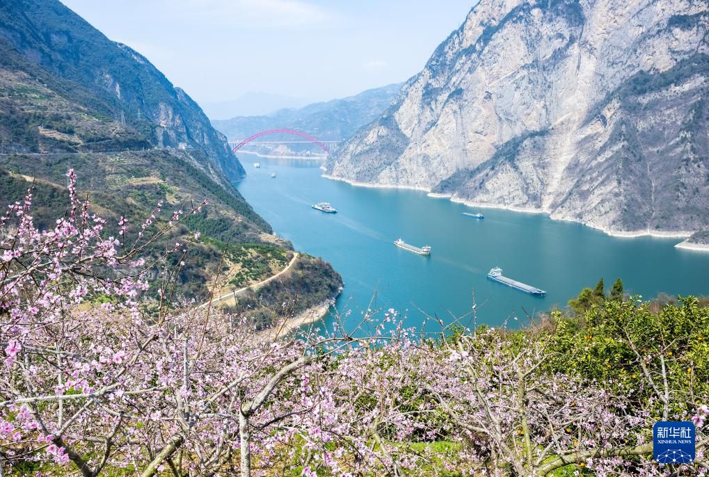 3月19日,船舶行驶在长江三峡西陵峡湖北省宜昌市秭归县兵书宝剑峡水域。新华社