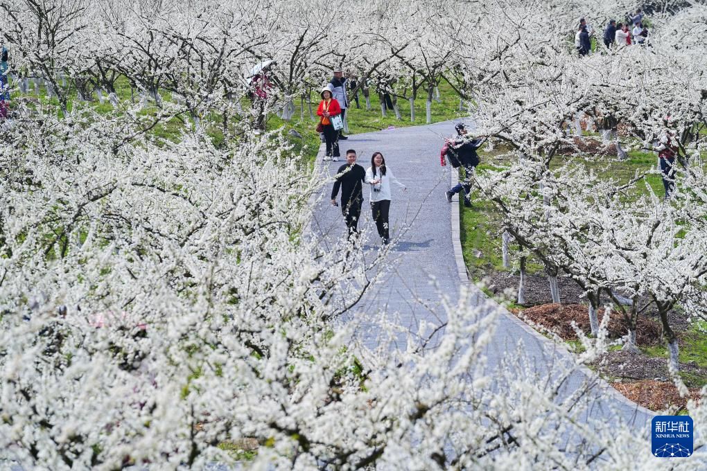 3月19日,游客在重庆市北碚区静观镇中华村山驿食集踏青赏花。新华社
