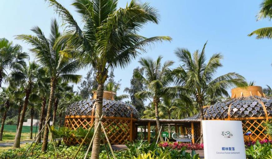 2024年3月18日,“博鳌近零碳示范区”启动运行,经过一年的努力,示范区节能减排成效显著,正式宣告完成从“近零碳”到“零碳”的关键跨越。图为3月25日,博鳌零碳示范区内的椰林聚落。新华社