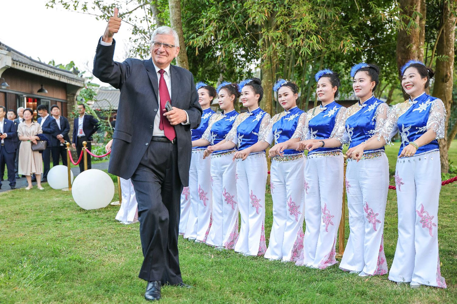 出席博鳌亚洲论坛2025年年会的嘉宾参观展览。中新社
