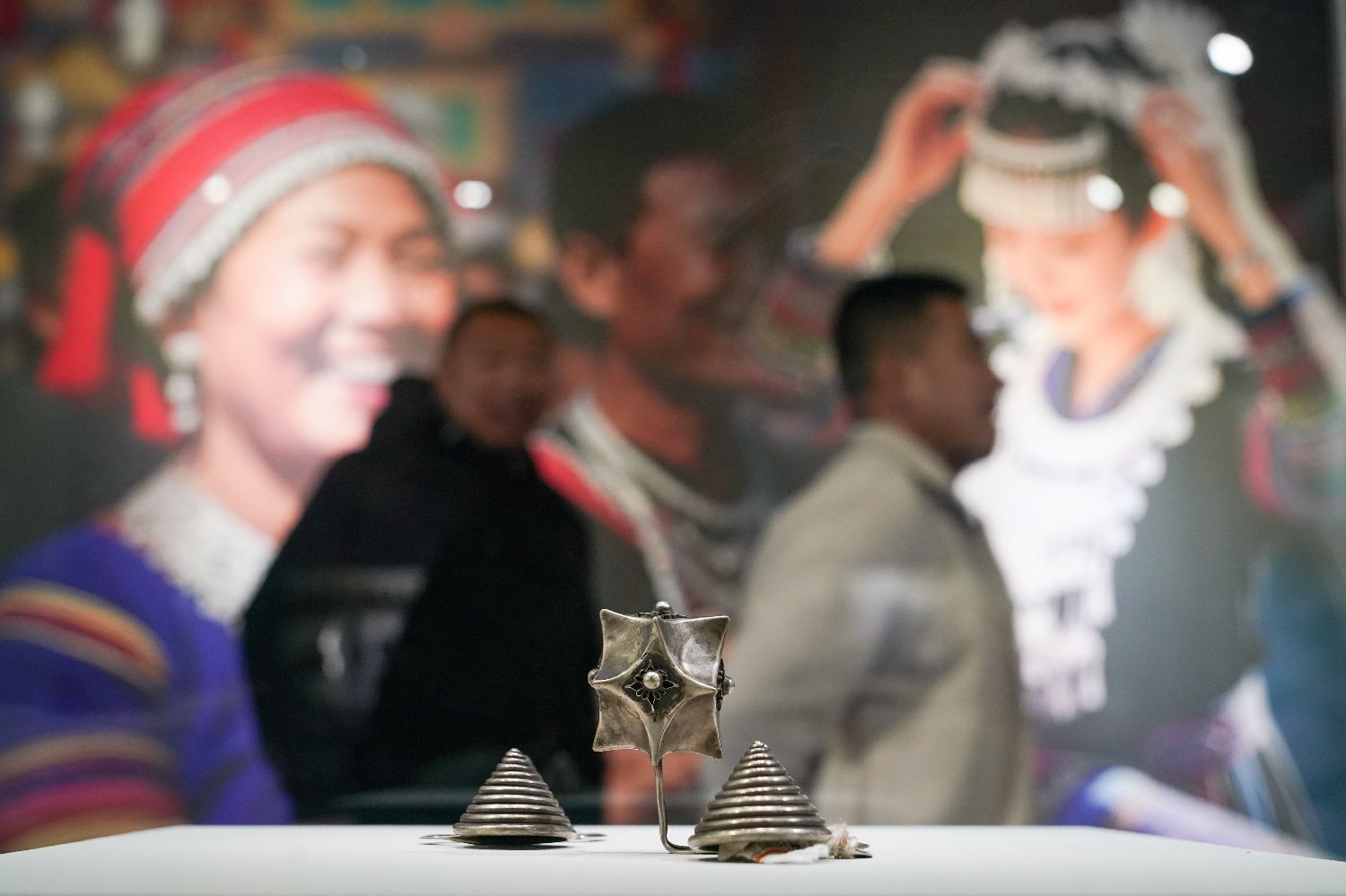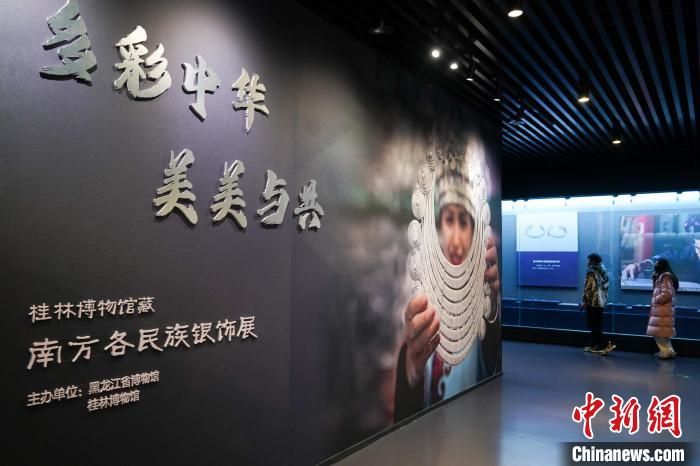 3月27日,“多彩中华美美与共——桂林博物馆藏南方各民族银饰展”在黑龙江省博物馆开展。该展览展出177件(套),共计279件银饰,根据银饰佩戴部位分为“银花钗头”“美佩环身”“镯钏绕腕”三个单元。图为展览入口处的展板。中新网