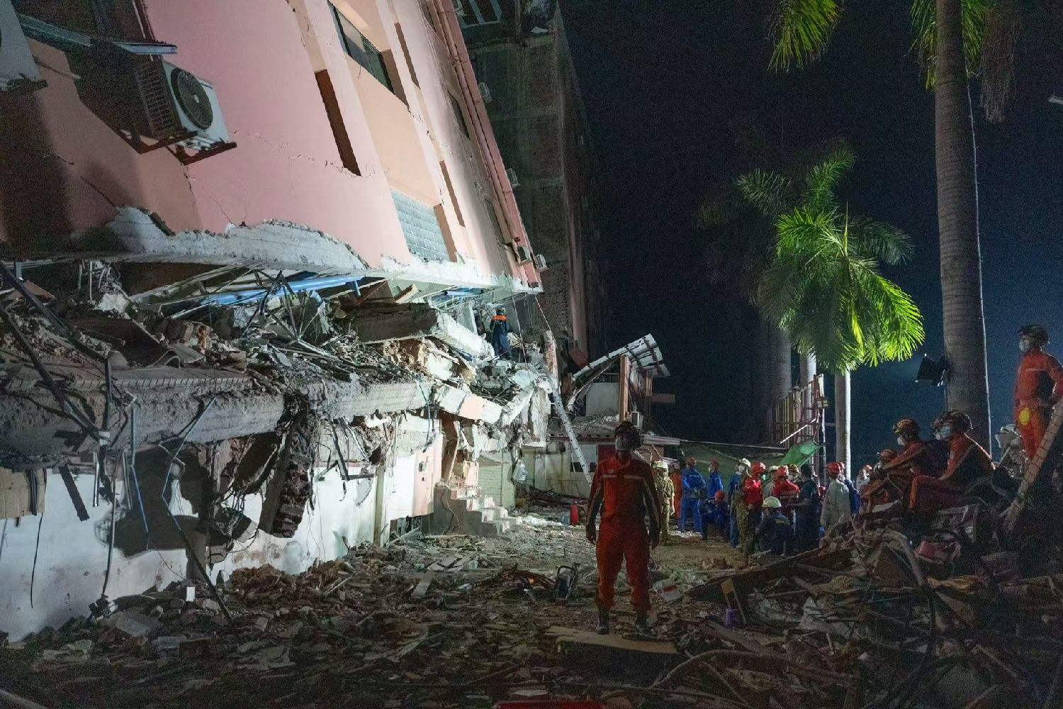 30日在缅甸内比都拍摄的救援现场(视频截图)。新华社发/云南广播电视台摄
