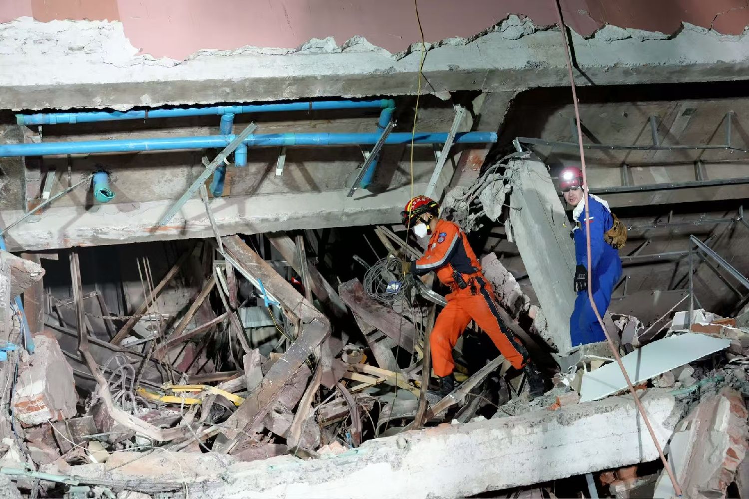 北京时间3月28日14时20分,缅甸发生7.9级地震,造成严重人员伤亡和设施损毁。地震导致该国多地建筑物倒塌、道路变形、桥梁坍塌。中国救援队积极出发飞赴灾区进行救援。目前,已有约400名中国地震专家、救援、医护人员在缅各地参与抗震救灾,中方救援队已救出6名幸存者。 当地时间3月31日0时40分,经过5个多小时的紧张救援,中国救援队在缅甸曼德勒市的长城饭店救援点搜救出一名被埋压人员,该女性被困近60小时,获救时生命体征良好,这是中国救援队抵达受灾最重的曼德勒地区后救出的第一位幸存者。图为救援现场。中新社