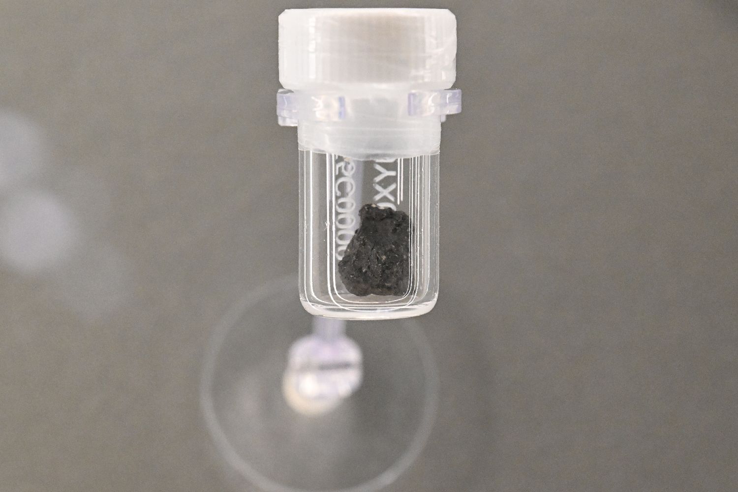 展出的嫦娥六号岩屑样品(月球背面样品)。中新社