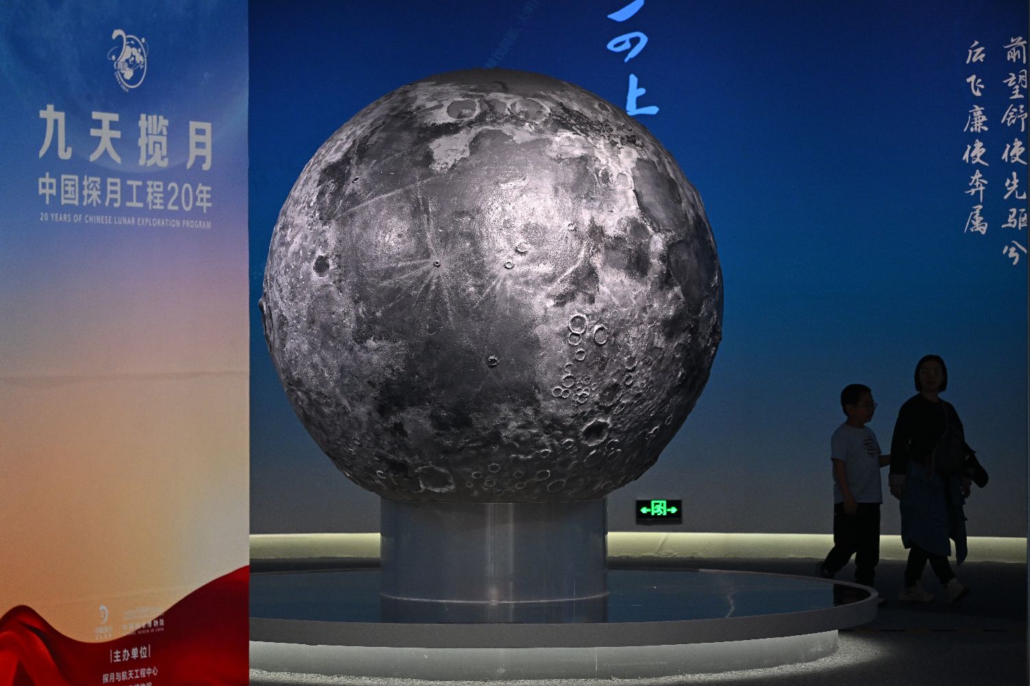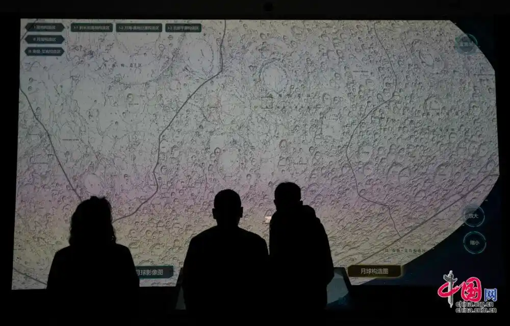 观众正在浏览月球构造图。中国网