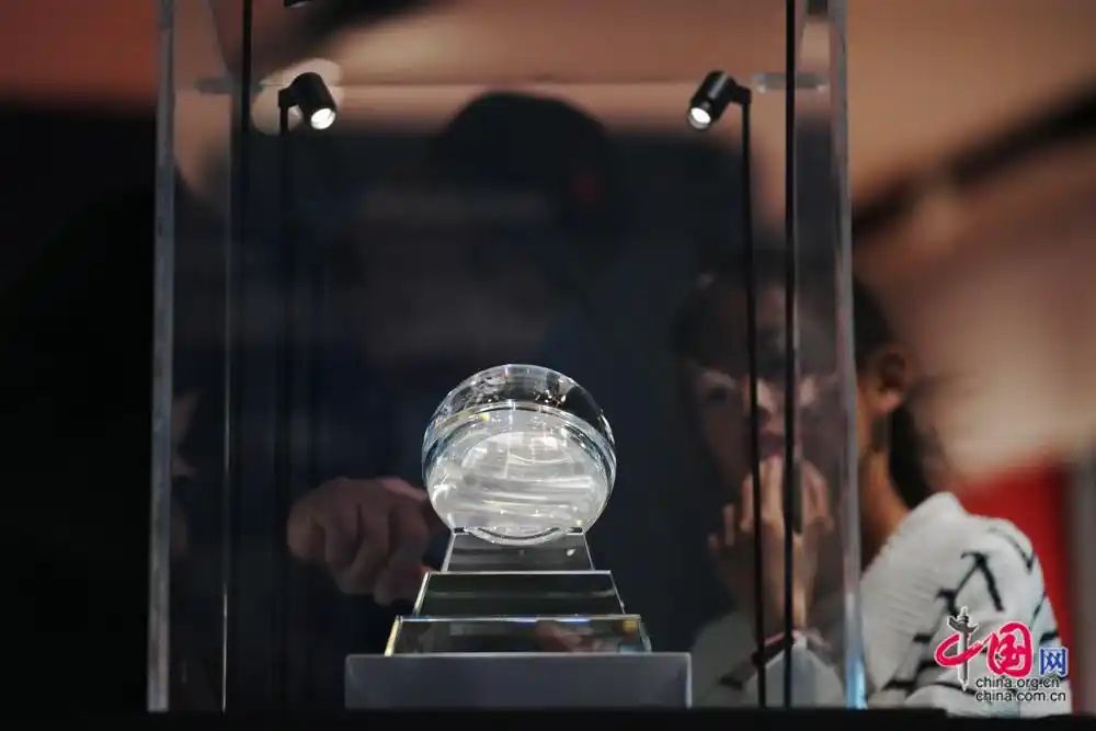 观众浏览嫦娥五号任务采集的第001号月球样品。中国网