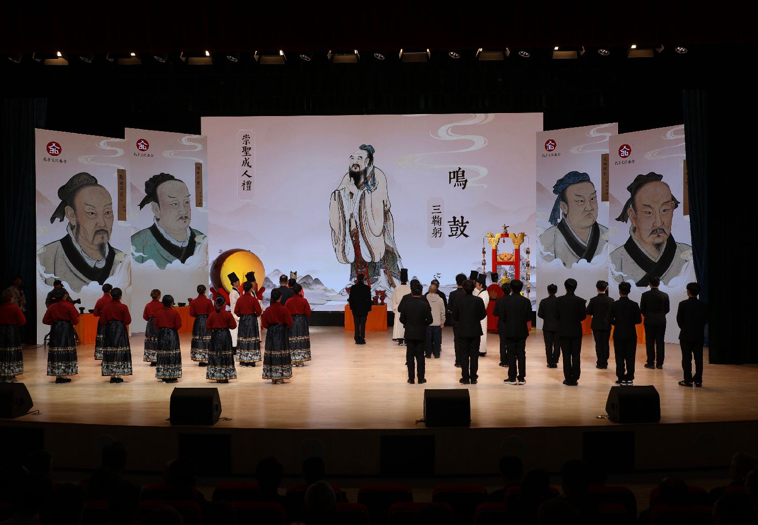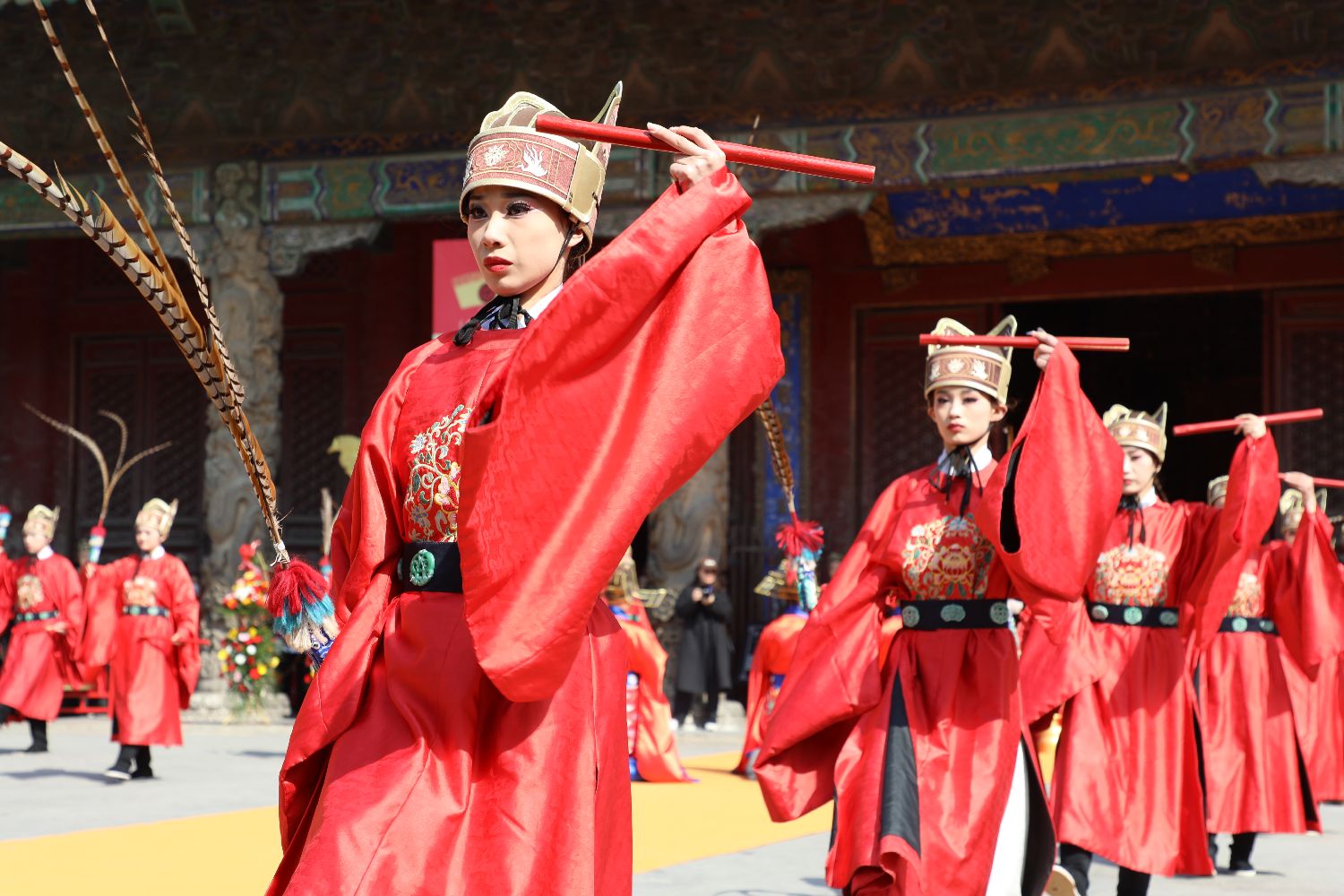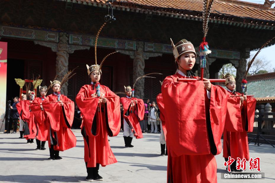 2025海峡两岸孔子文化春会·礼乐嘉年华启动仪式现场,《武佾舞》表演。中新网