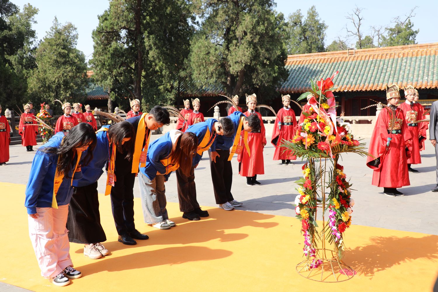 4月1日,2025海峡两岸孔子文化春会两岸青年同祭孔在山东曲阜孔庙举行。中新社