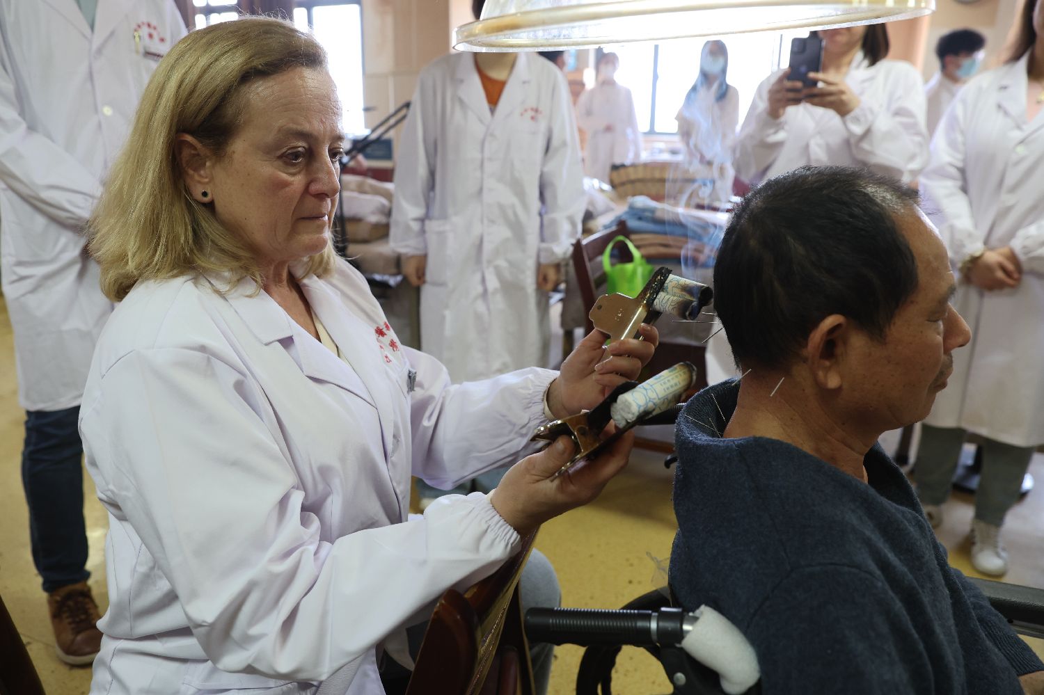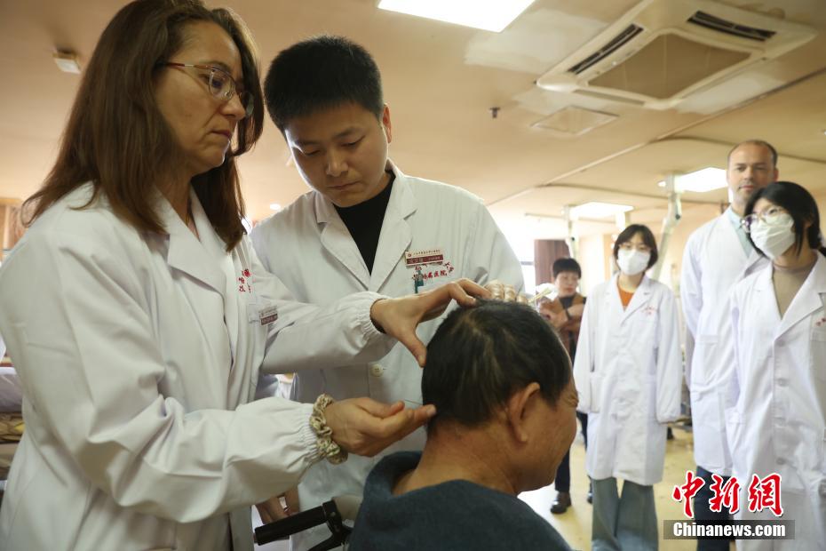 4月2日,江西中医药大学附属医院西湖院区,葡萄牙“洋中医”在门诊学习针灸技法。中新网