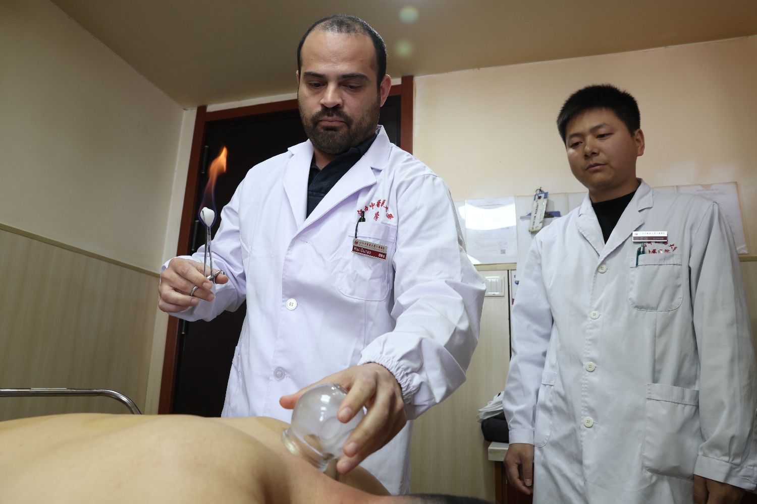 4月2日,江西中医药大学附属医院西湖院区,葡萄牙“洋中医”在此学习拔罐技法。中新社