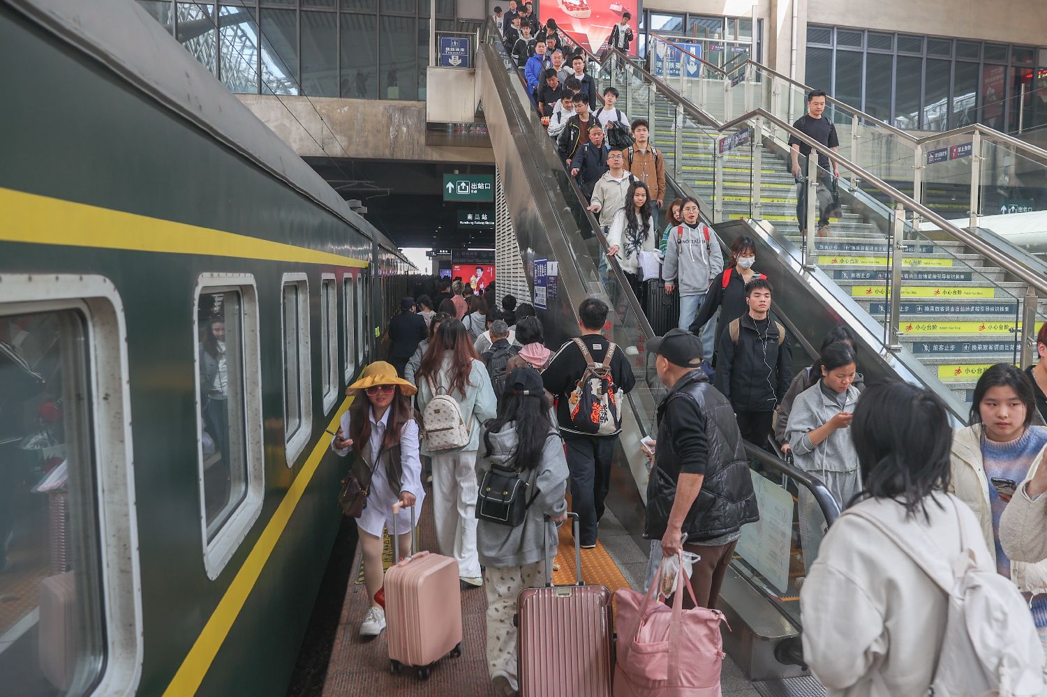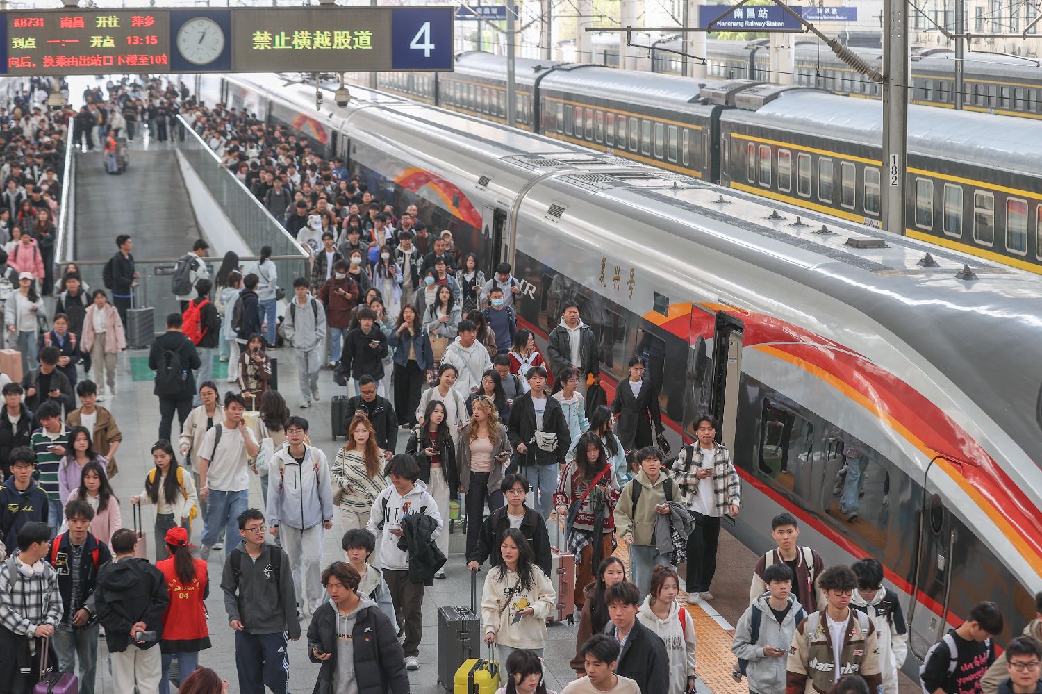 4月3日,江西南昌站,旅客从站台上走过。中新社