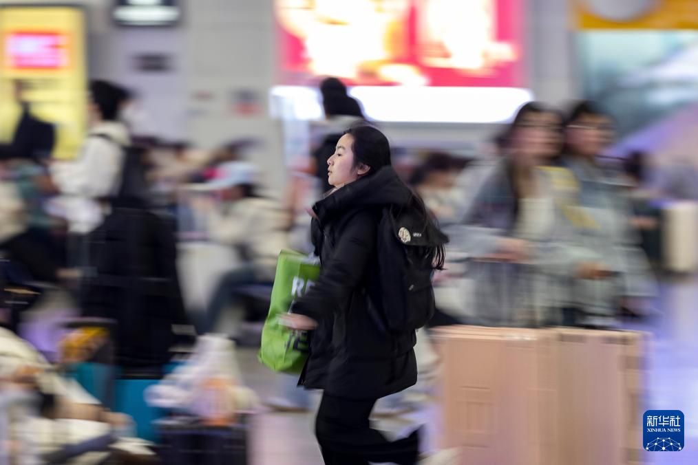 4月3日,旅客在浙江省金华站候车大厅内赶车。新华社