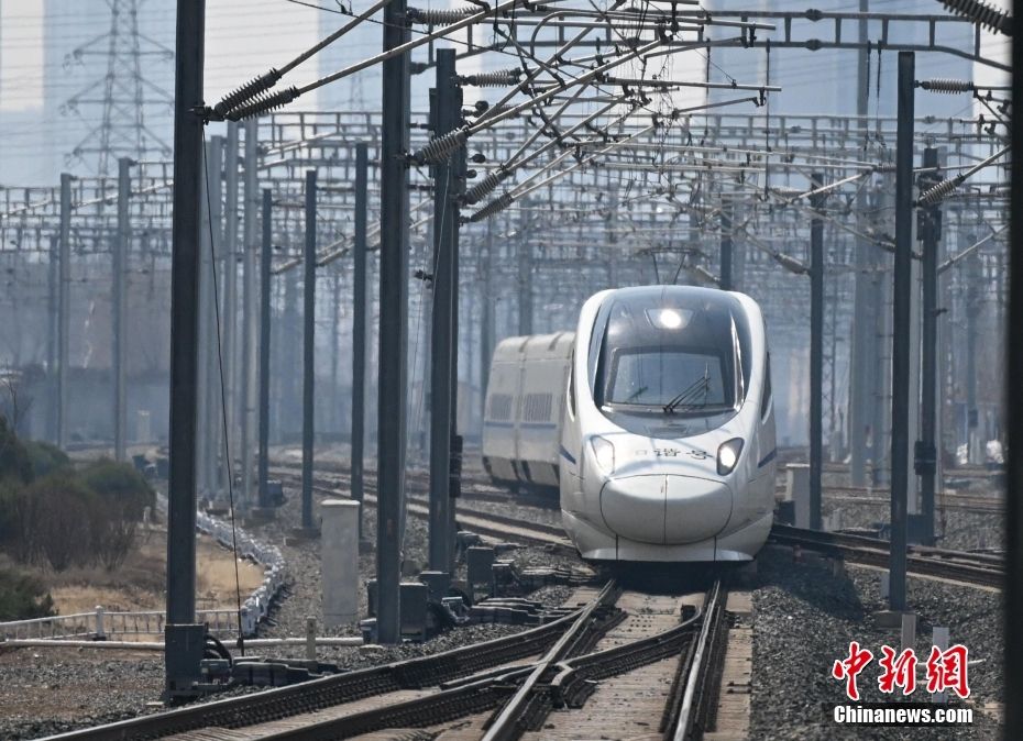 4月3日,为期5天的铁路清明假期运输启动,中国铁路预计发送旅客8450万人次,日均发送旅客1690万人次。图为当日,一列和谐号动车组驶离北京南站。中新社