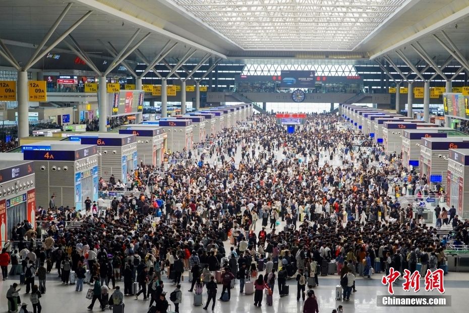 4月3日,郑州东站候车大厅内人头攒动。中新网