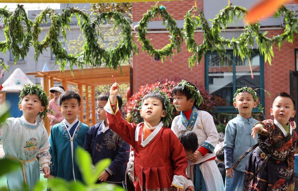 清明节将至,中国多地学校开展青团制作、放飞纸鸢等民俗活动,感受传统节日文化的魅力。图为4月3日,河南开封新街口幼儿园的小朋友在体验射柳。