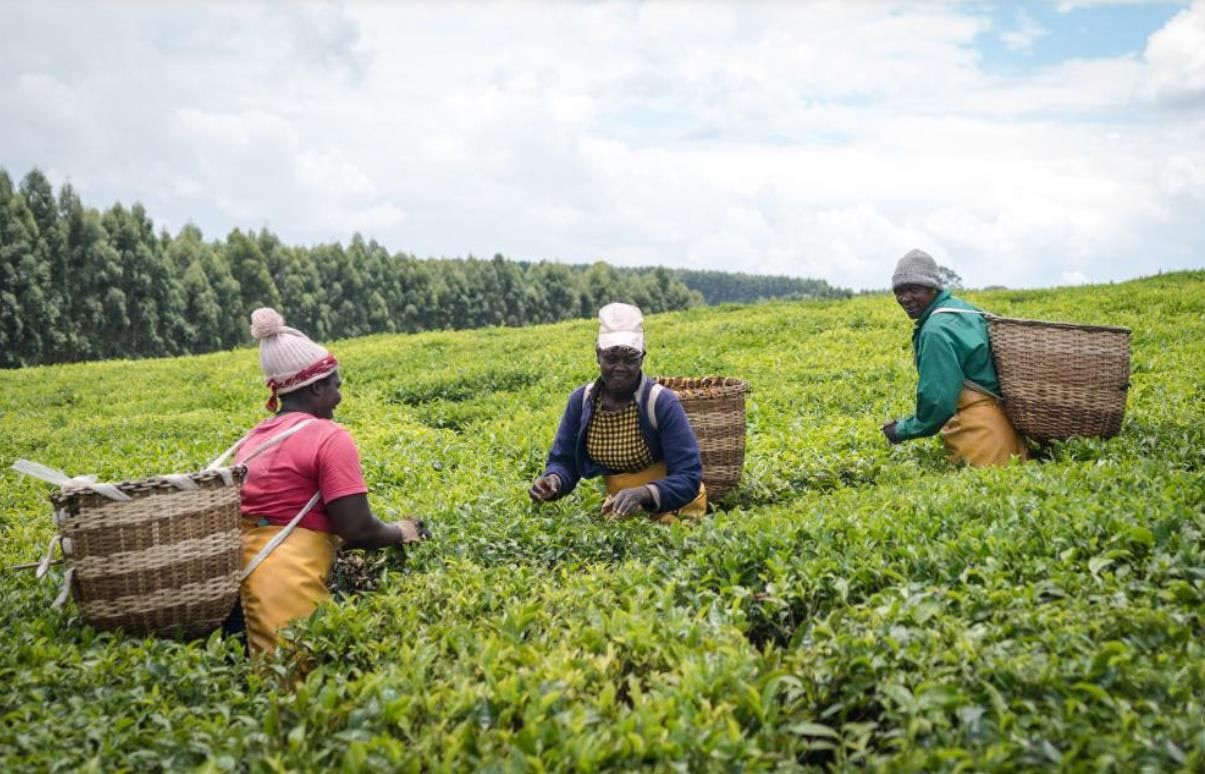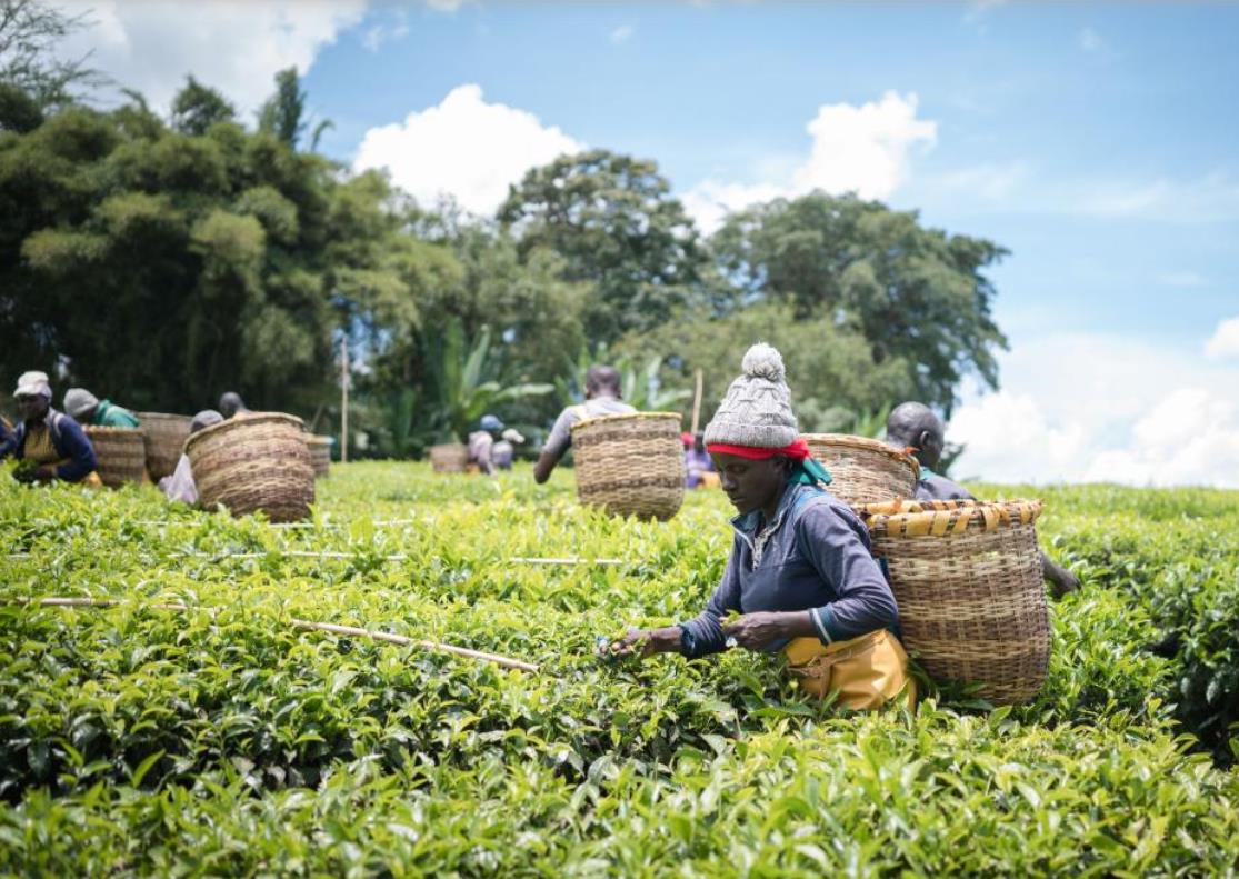 4月4日,农民在肯尼亚凯里乔的茶田挑拣茶叶。