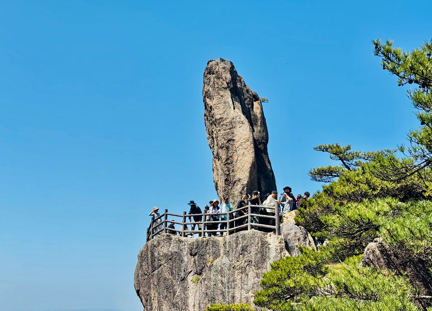 中国清明假期,民众纷纷走出家门,享受美好春光。图为4月6日,游客在安徽黄山风景区飞来石景点参观。据黄山风景区管理委员会消息,清明假期,黄山风景区3天假期共接待游客人数超9.5万,同比增长26%。中新社