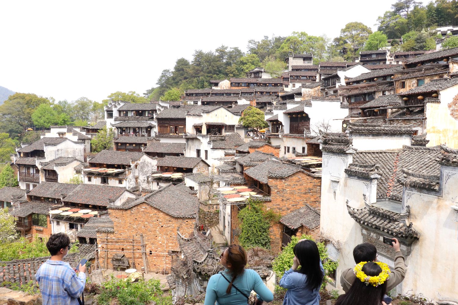 4月5日,江西婺源县迎来晴好天气,篁岭古村吸引不少游客前去参观游玩,领略古村美景。中新社