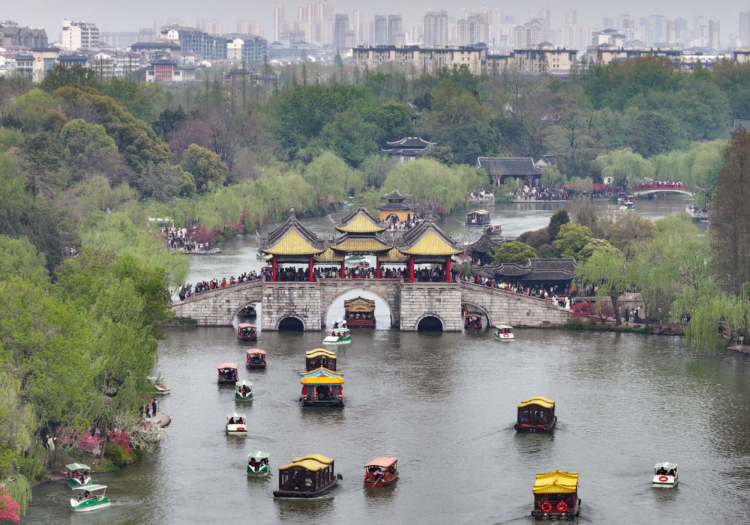 4月4日,江苏扬州瘦西湖风景区游人如织。中新社