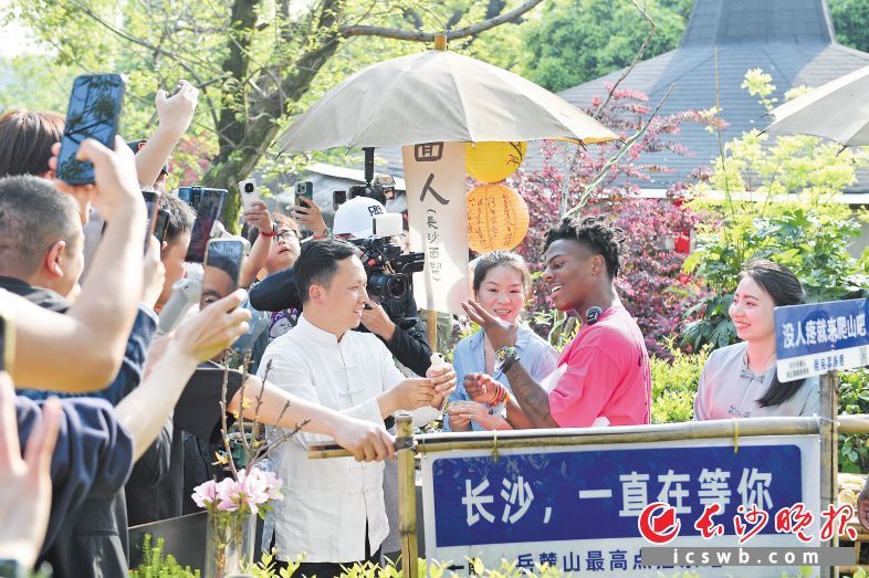 “甲亢哥”在岳麓山和面人师傅交流。长沙晚报