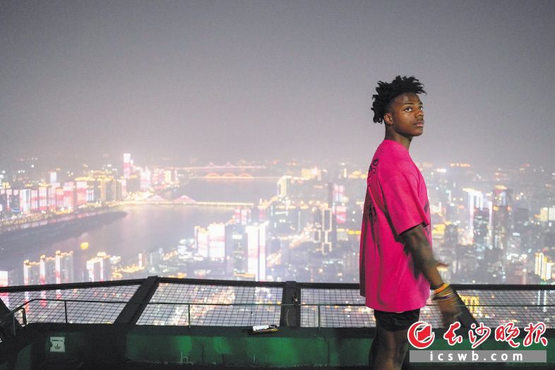 “甲亢哥”在长沙国金中心观看夜景。长沙晚报