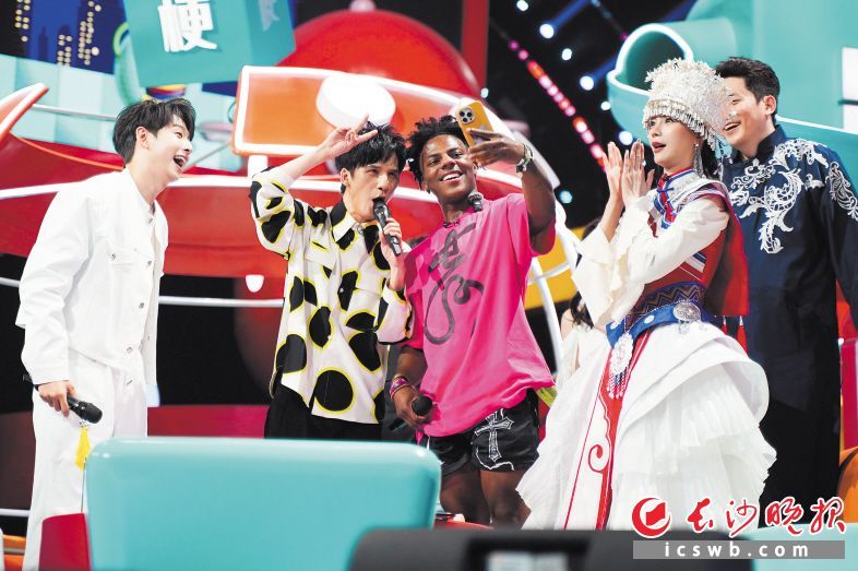 “甲亢哥”与大张伟在湖南电视台互动合影。长沙晚报