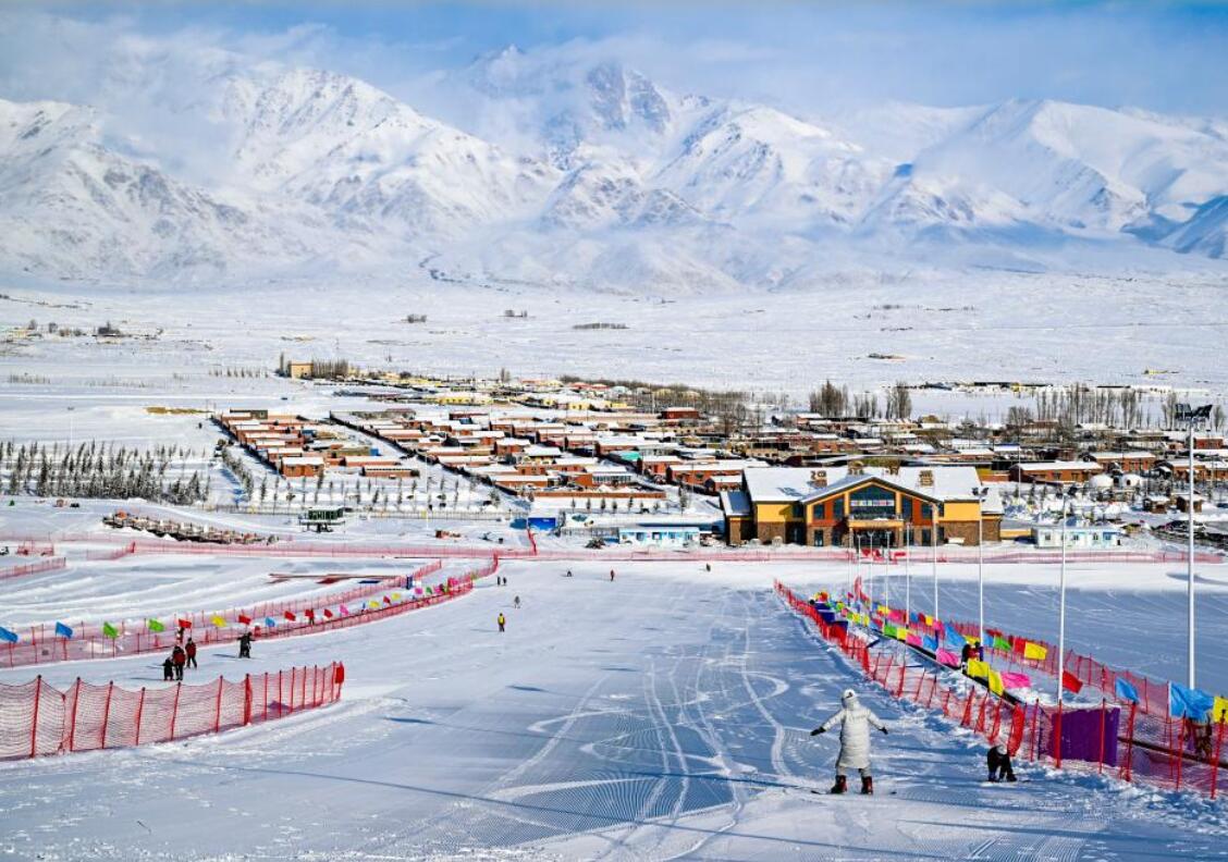 近年来,新疆依托阿尔泰山、天山丰富的冰雪资源优势,推动冰雪产业集聚发展,致力于打造世界级冰雪运动和冰雪旅游目的地,建设了一批高等级滑雪场,吸引大量海内外游客,使冰雪资源逐步转化为经济效益。图为阿勒泰市城区的新疆阿勒泰将军山国际滑雪度假区。