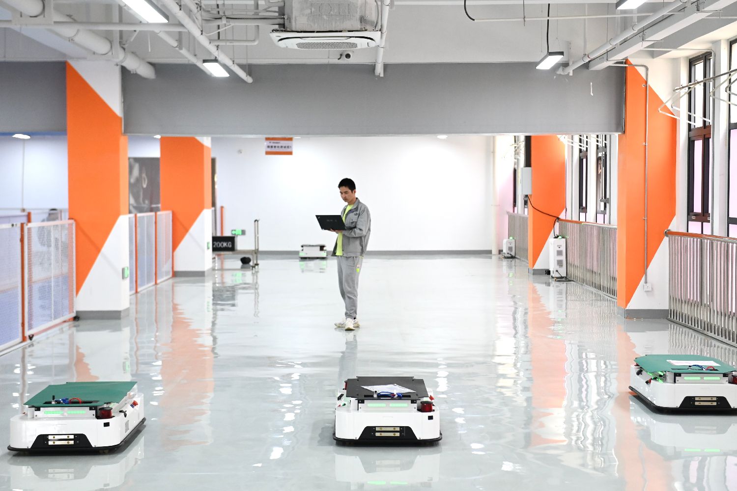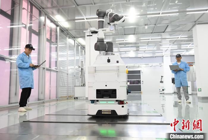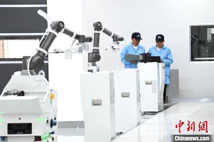 4月8日,技术人员在进行工业机器人的性能调试。中新网