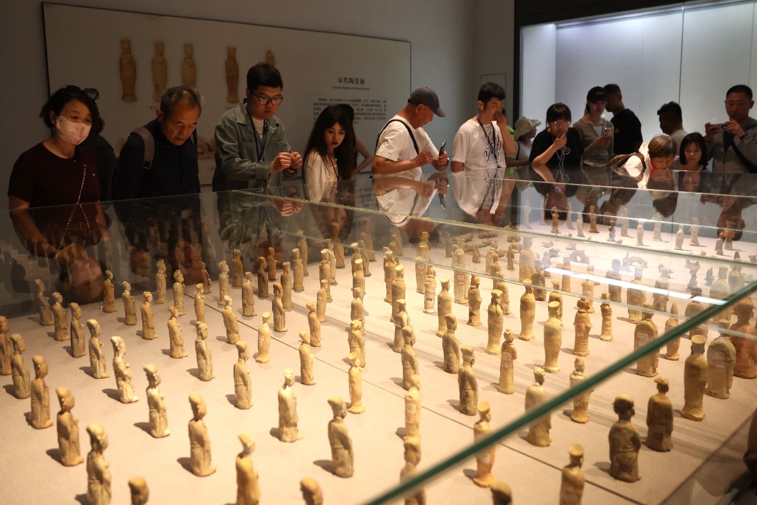 游客在博物馆内参观展出的宋代陶瓷俑。中新社