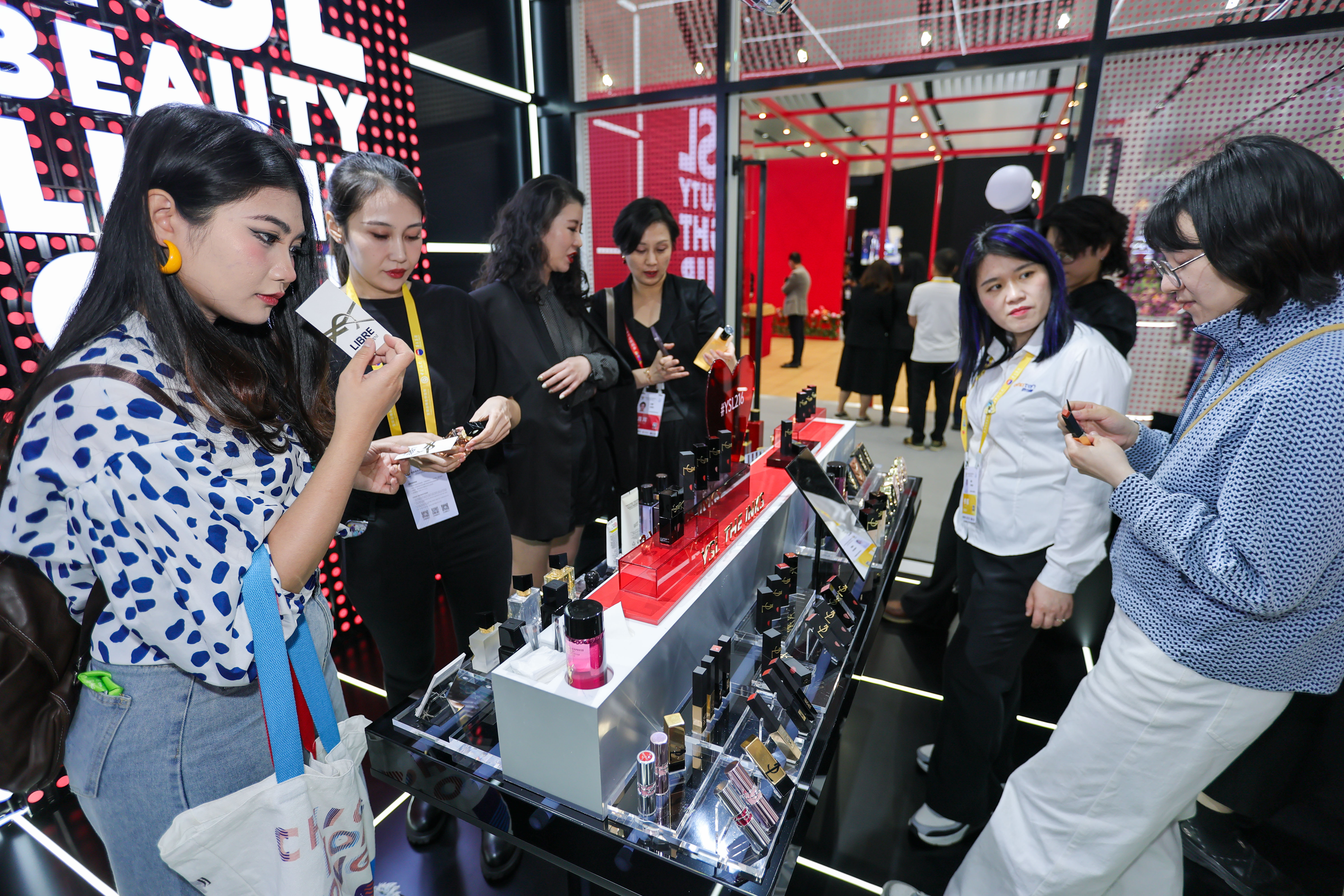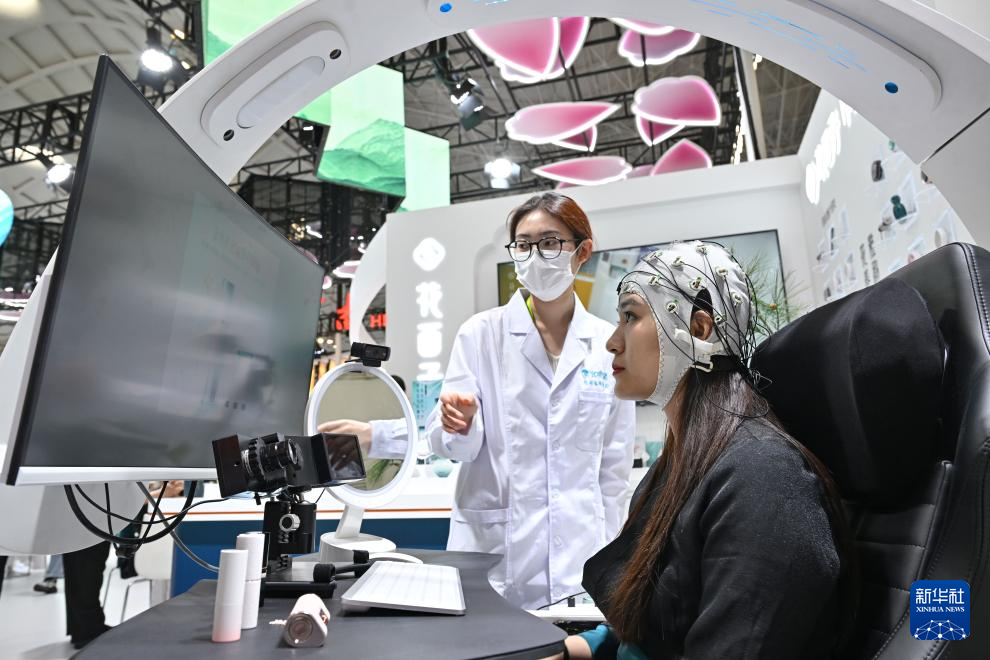 展商在消博会现场展示美妆多维全息AI感官行为研究系统,可检测用户对美妆产品满意度。新华社