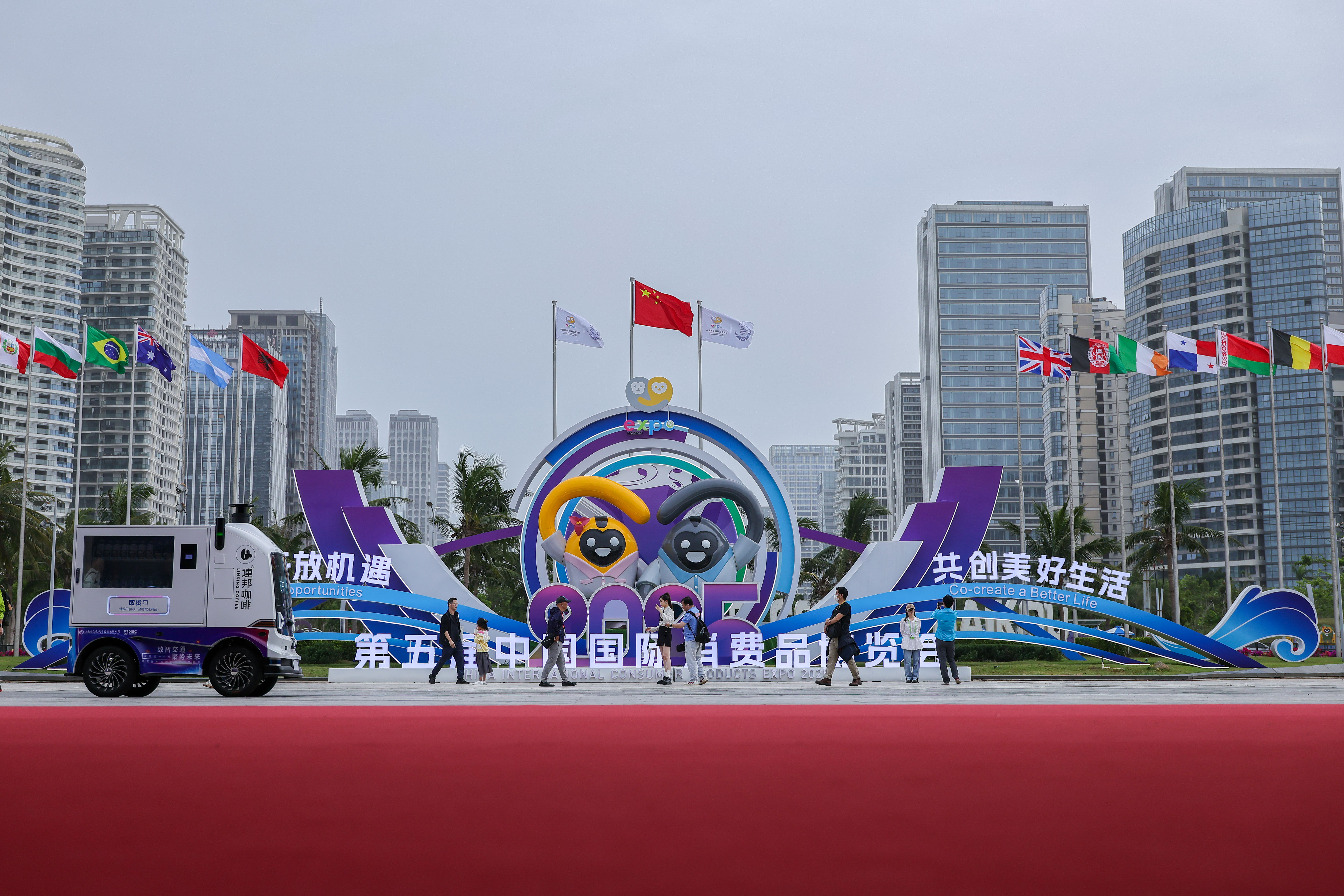 4月13日,在海南海口,以“共享开放机遇,共创美好生活”为主题的第五届中国国际消费品博览会开幕,将持续至4月18日。来自71个国家和地区的1700余家企业携4100余个品牌参展。图为小鹏汇天陆行“母舰”亮相消博会现场。中新社