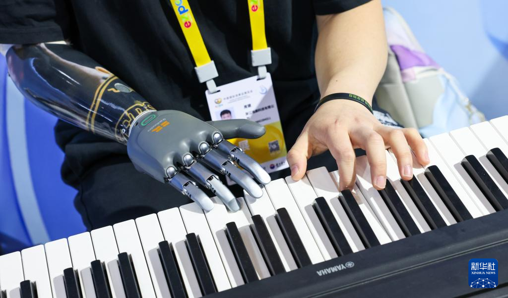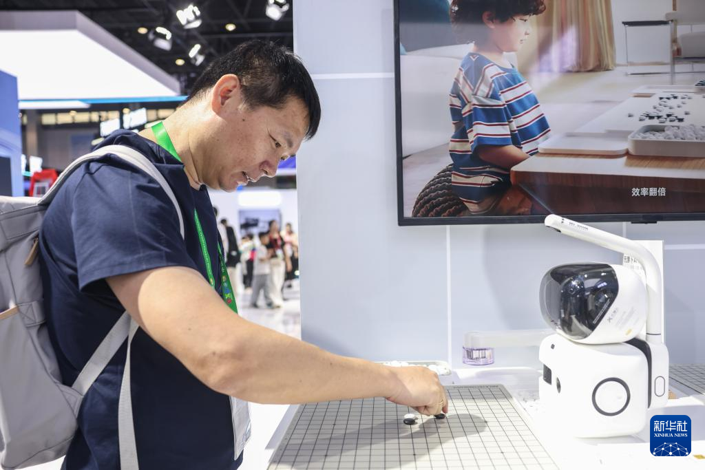 观众在第五届消博会上体验商汤科技的AI围棋机器人。新华社
