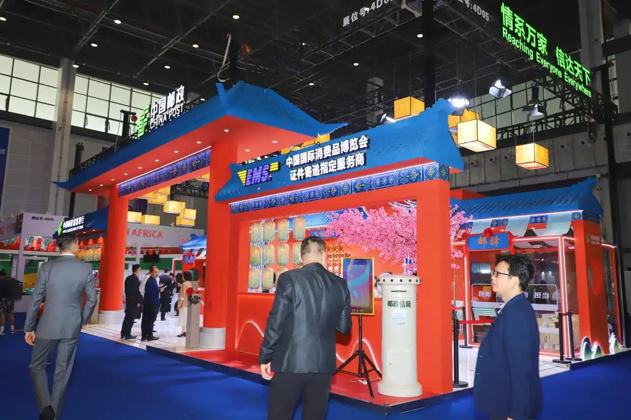 消博会上,连续五届参展的消博邮局再度与大众见面。今年,消博邮局进一步升级服务,通过构建 “金融 + 寄递 + 邮务” 创意式系列主题活动消费场景,为参展商及观展市民带来了一场独特的消博体验。图为消博邮局。央广网