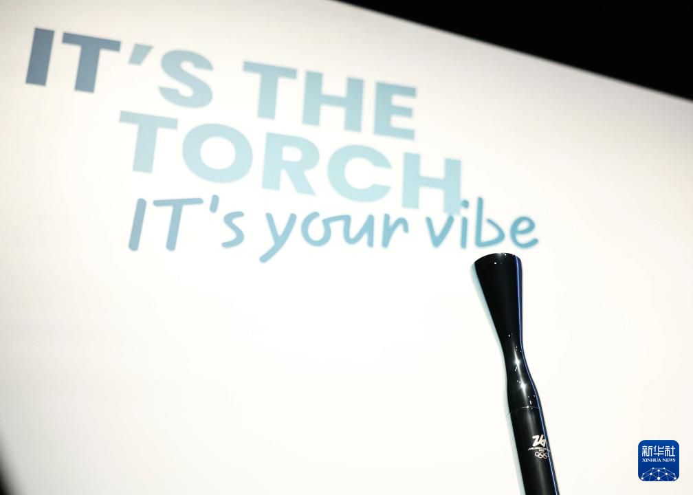 这款名为“Essential”(可译为“本源”)的火炬,以极简设计风格、先进技术与环保理念相结合,展现出意大利设计的独特魅力和奥林匹克精神的时代内涵。图为4月14日在米兰发布活动现场拍摄的2026年米兰-科尔蒂纳丹佩佐冬奥会火炬。新华社