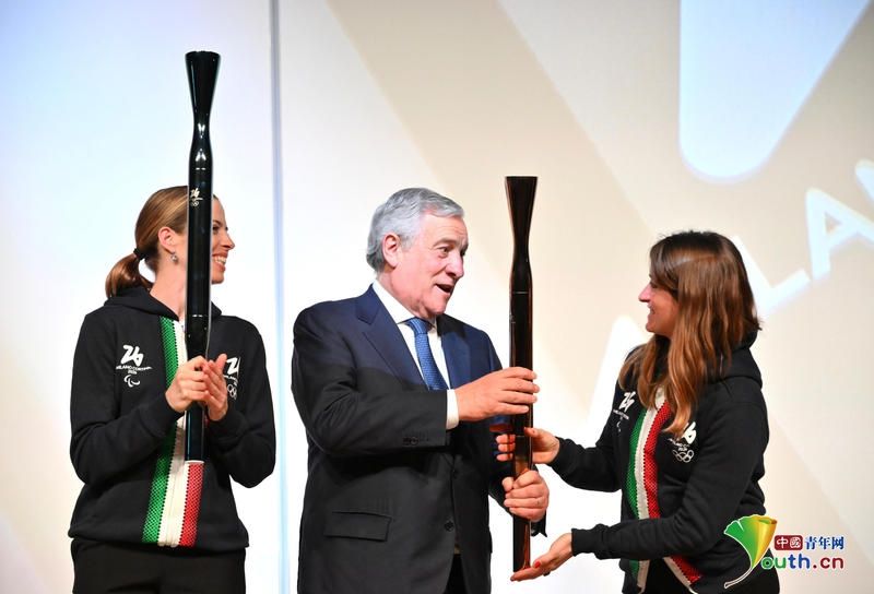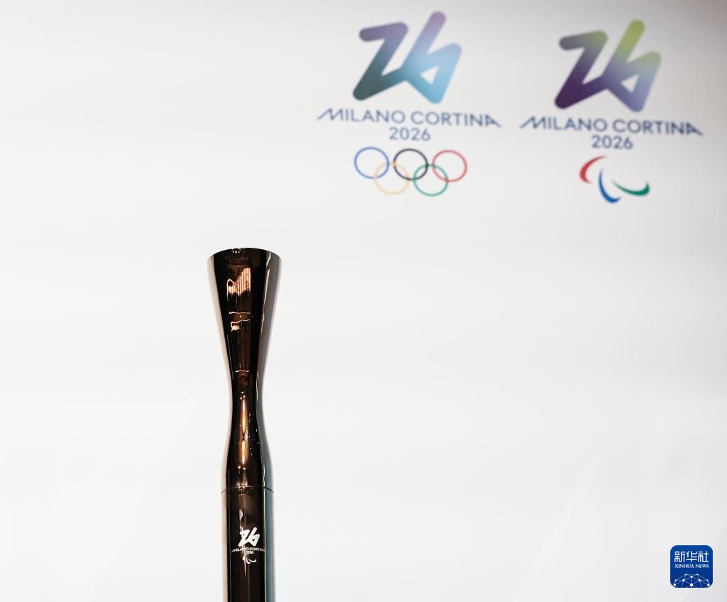 4月14日在米兰发布活动现场拍摄的2026年米兰-科尔蒂纳丹佩佐冬残奥会火炬。新华社
