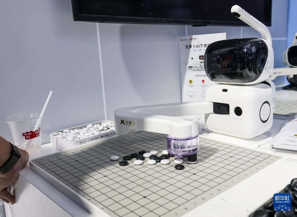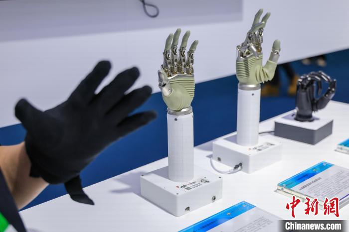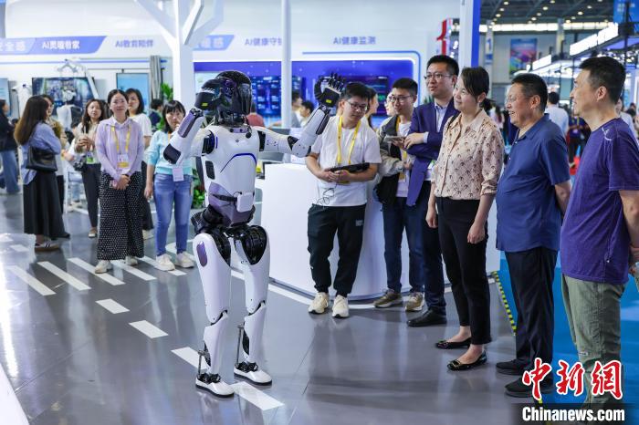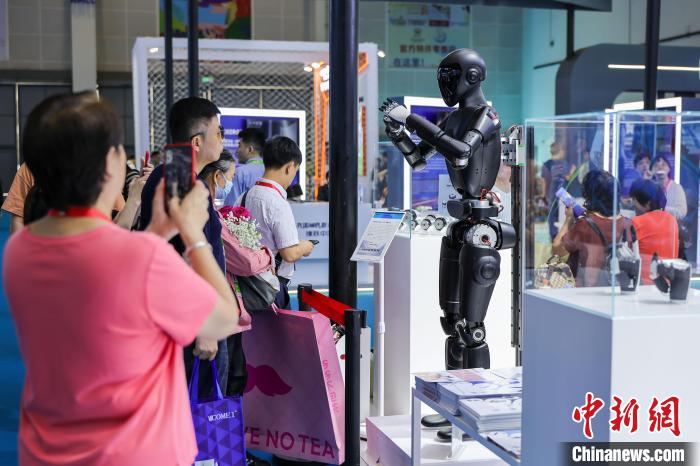 一款展出的智能机器人向参观者做出抱拳手势。中新网
