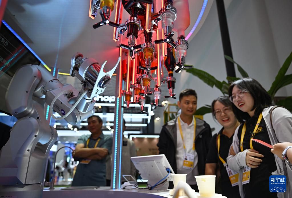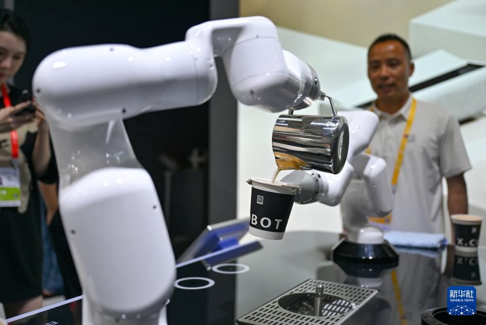 消博会上展示的一款机器人在制作拉花咖啡。新华社