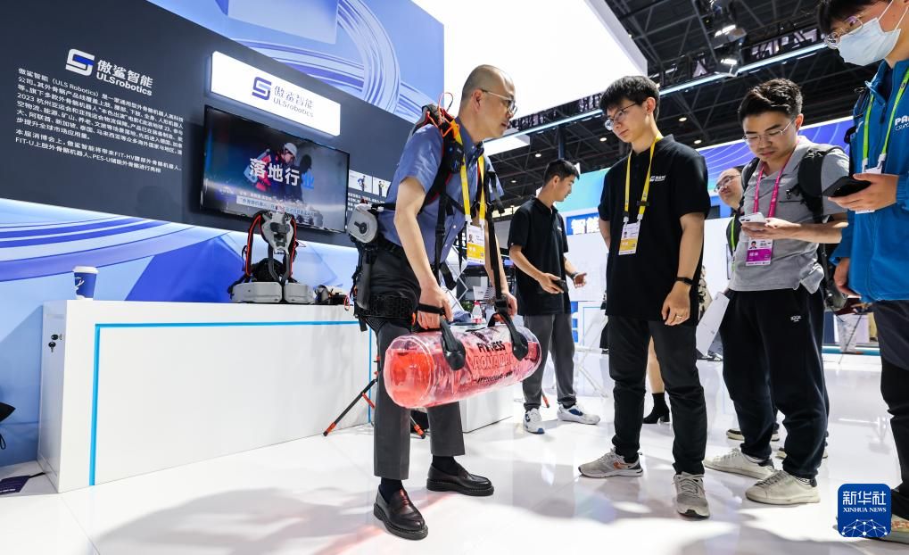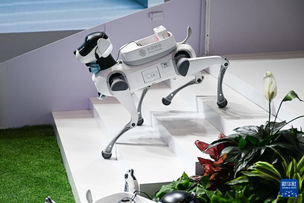 宇树科技展示的机器狗在第五届消博会场馆内活动。新华社