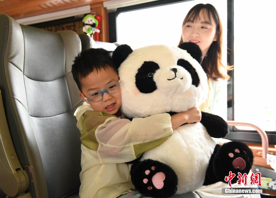 车厢内的大熊猫装饰物吸引小朋友。中新网
