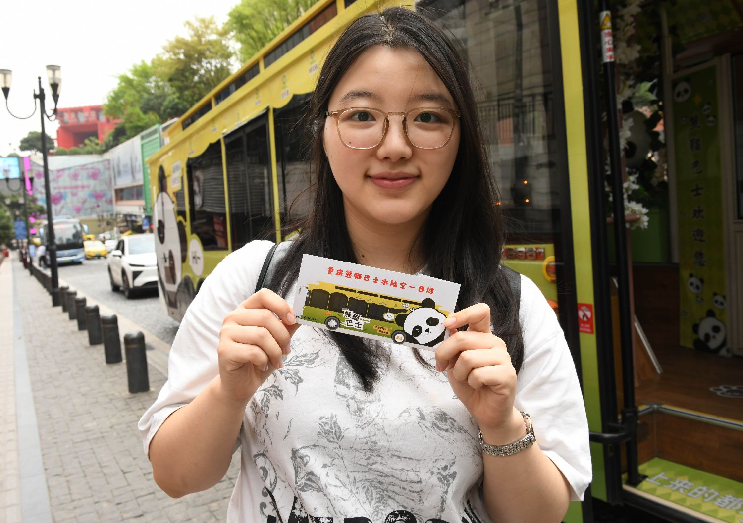 据悉,该线路是为了提升游客旅行体验,进一步推动“交旅融合”“文旅融合”发展,开通的重庆首条熊猫巴士,游览线路覆盖重庆市人民大礼堂、重庆中国三峡博物馆、重庆轨道交通2号线李子坝站、重庆动物园、重庆建川博物馆、洪崖洞等多个网红景点。图为乘客展示熊猫巴士纪念票。中新社