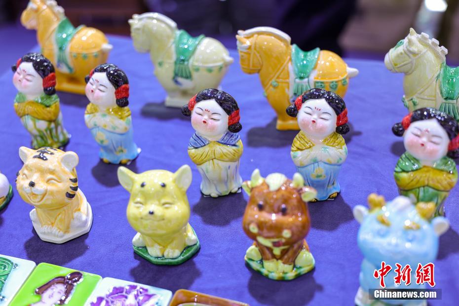 利用唐三彩工艺制作的创意工艺品河南馆展出。中新网