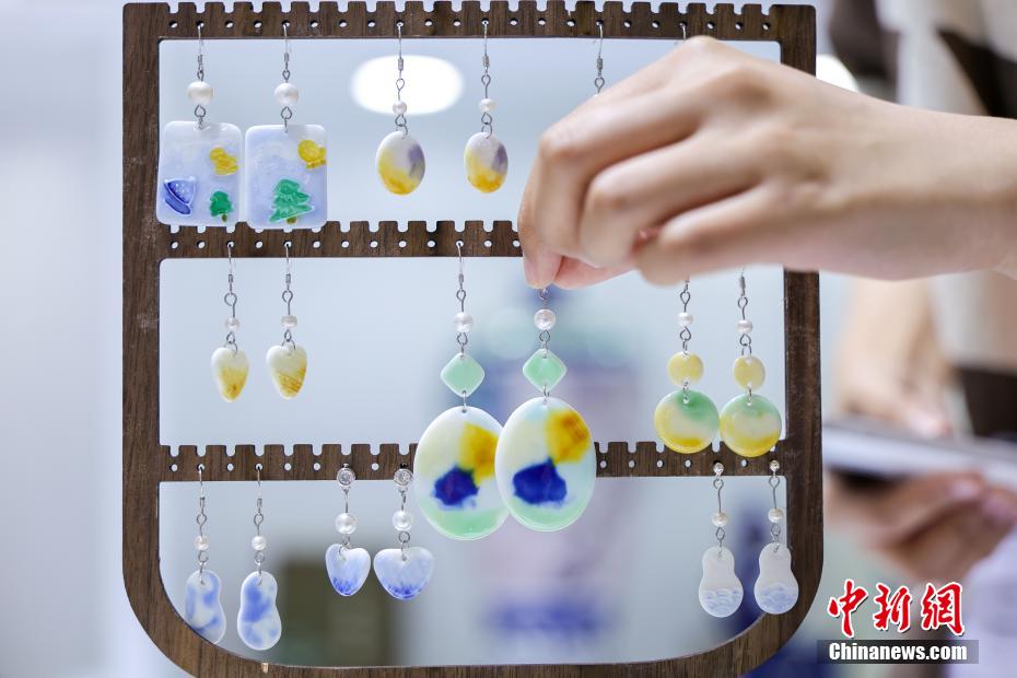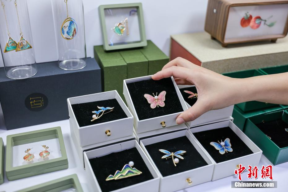 利用湘绣技艺制作的精美饰品吸引参观者。中新网