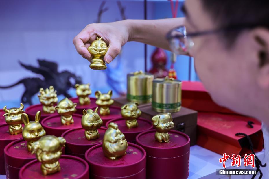 安徽馆展出的纯铜十二生肖非遗手作吸引参观者。中新网