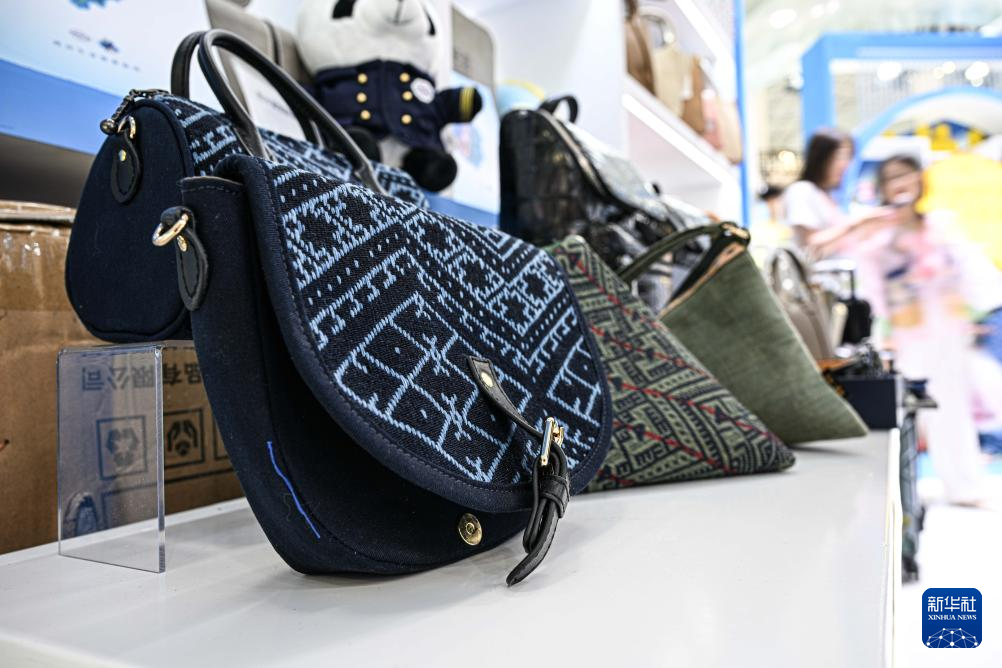 海南馆带有黎锦元素的手包。黎族传统纺染织绣技艺被列入人类非物质文化遗产代表作名录。新华社