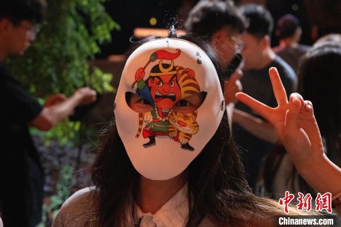 观众头戴水浒人物面具参与其中。中新社