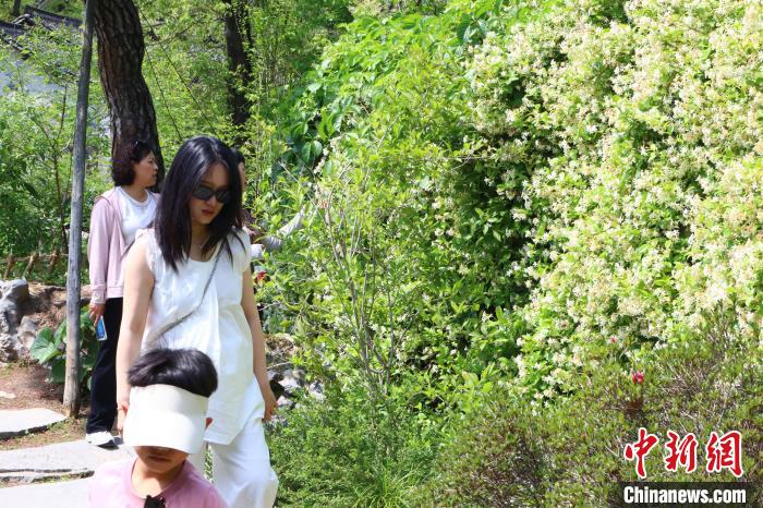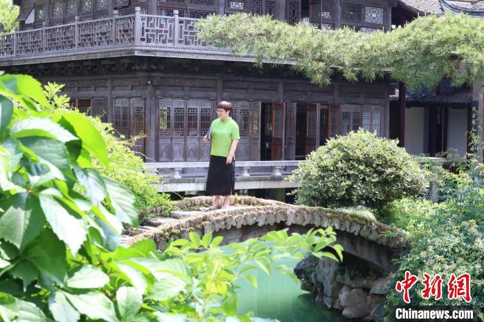 5月12日,濮院时尚古镇内花墙吸引游客。中新网