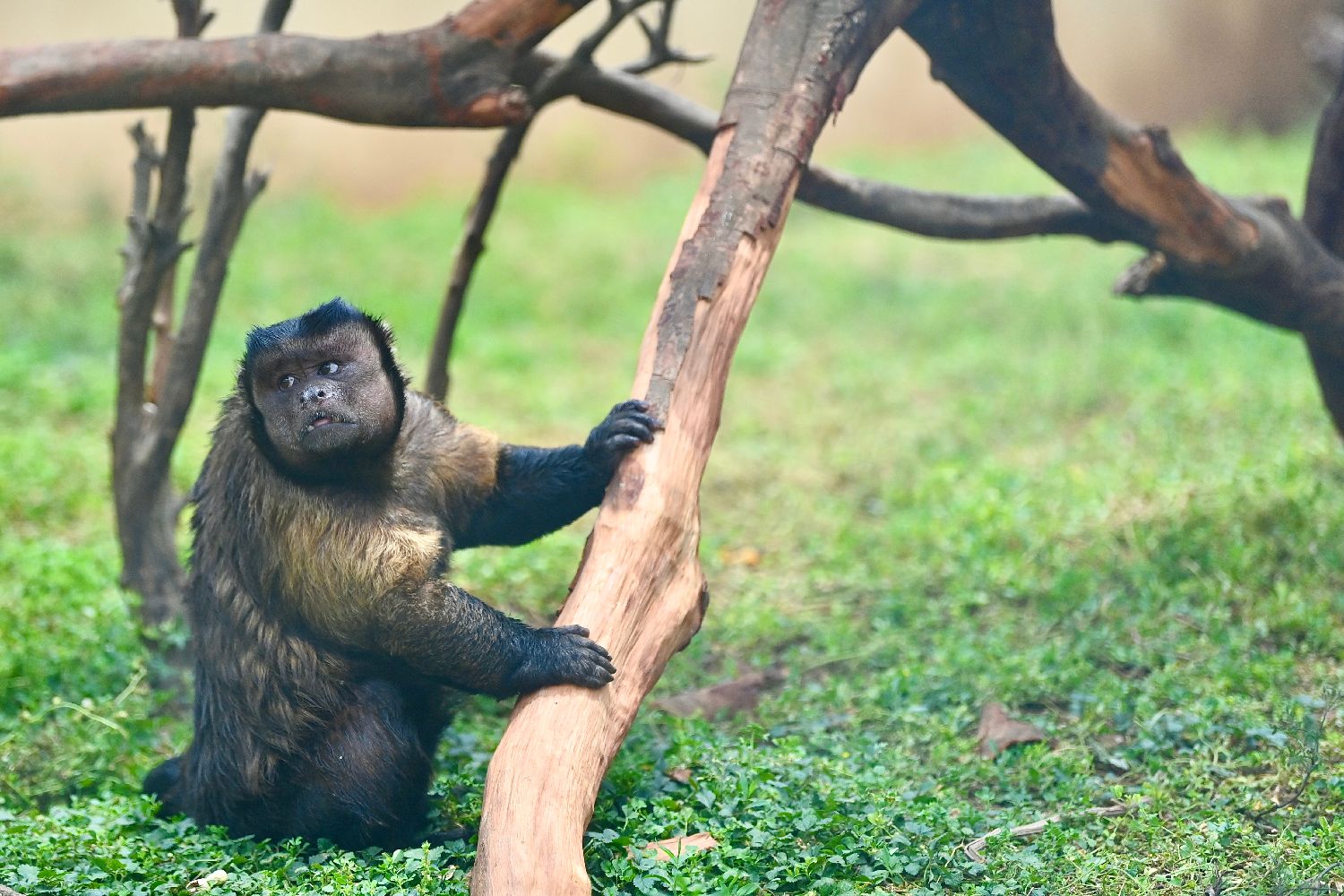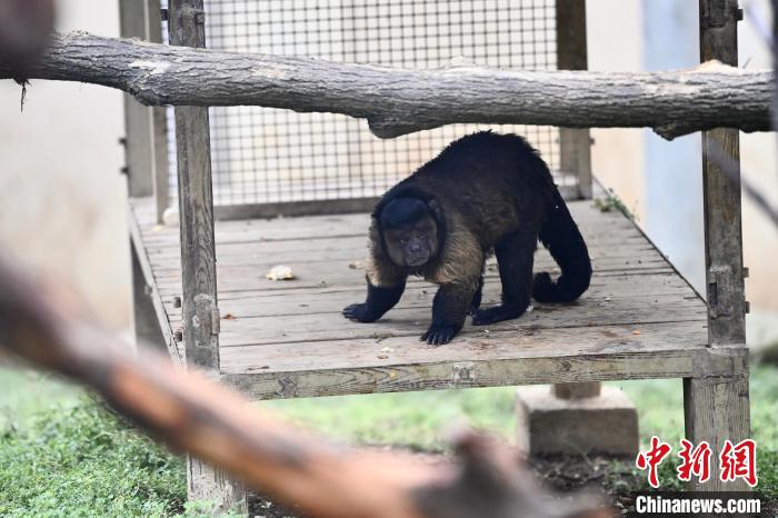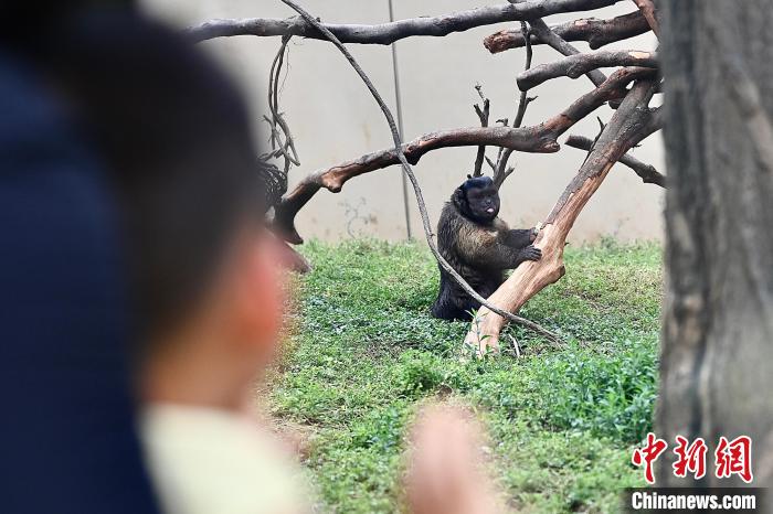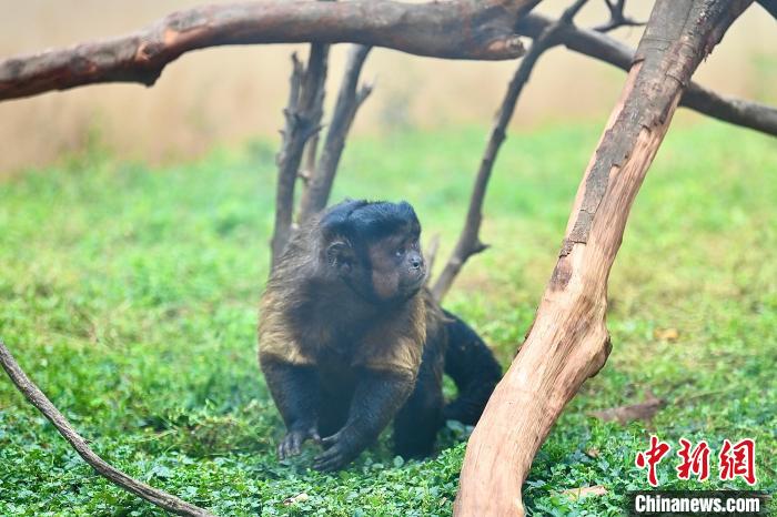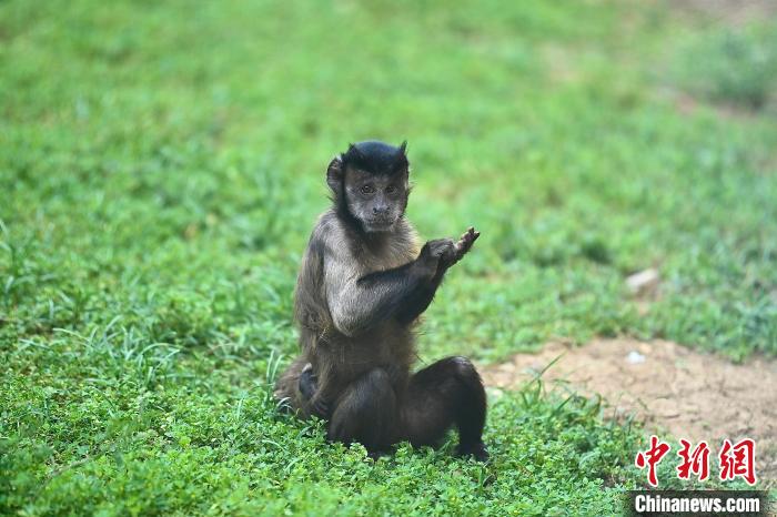 5月14日,方脸猴“大壮”正在玩耍。中新网