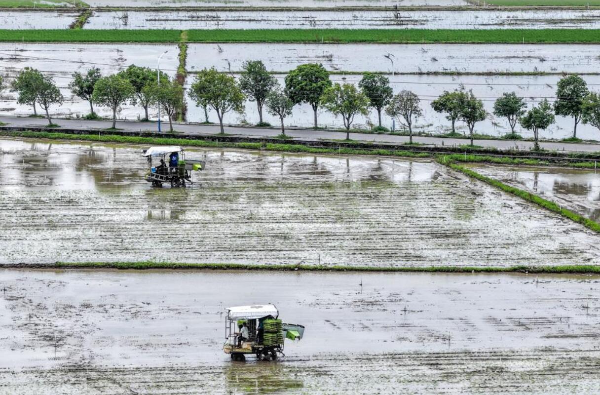 5月20日,农民在湖南永州道县营江街道岗下村田间劳作。